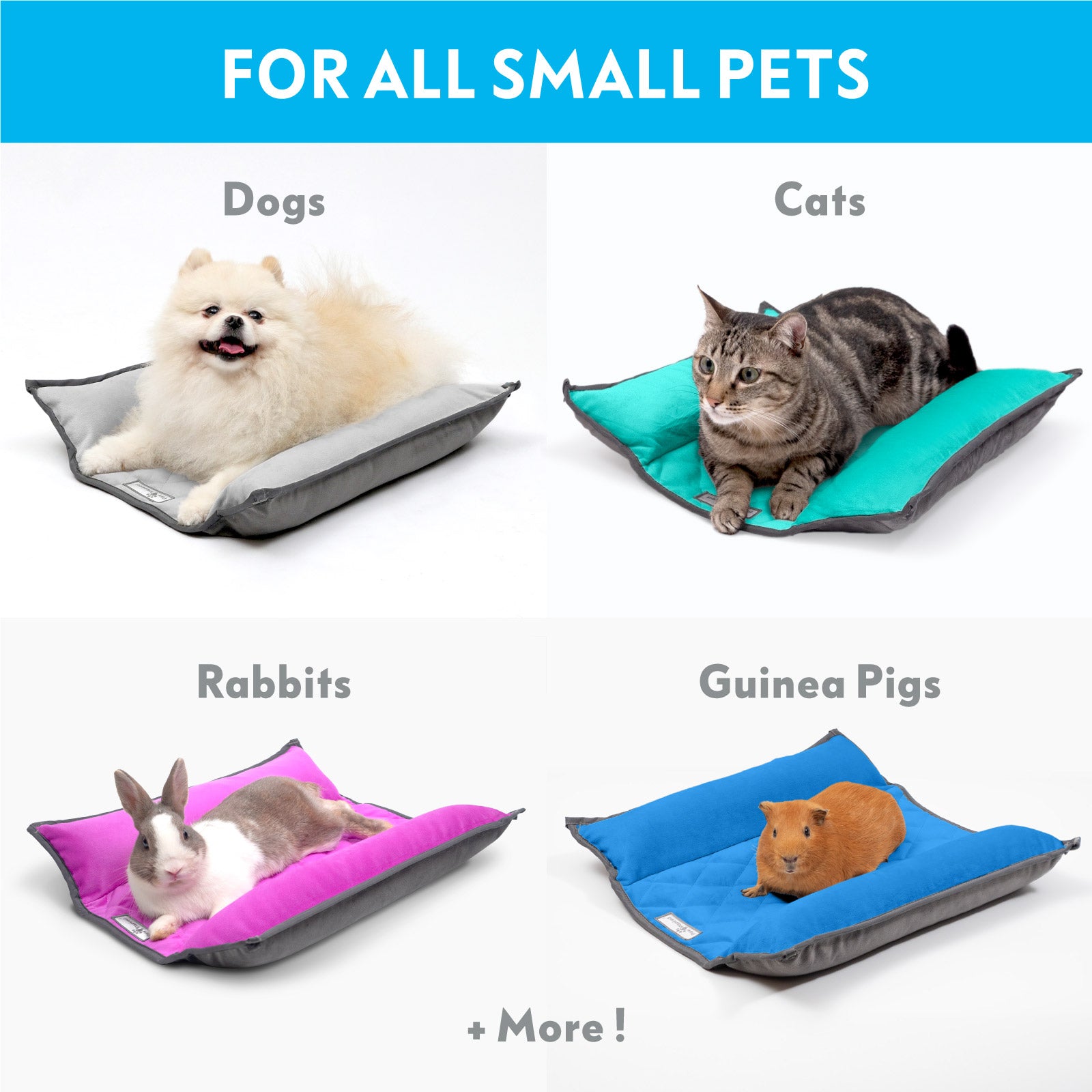 Introducing the Snuggle Bunny® Bed, a comfy and cozy pet bed designed for rabbits and other small animals. This soft fleece resting mat features two pillowy sides to give your pet a sense of calmness and security. It can even simulate the feeling of cuddling with other bunnies.